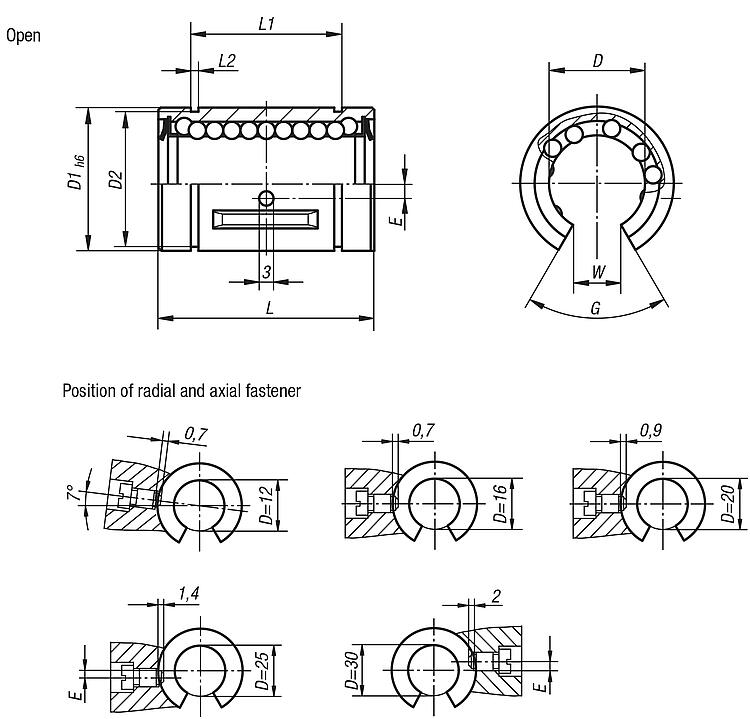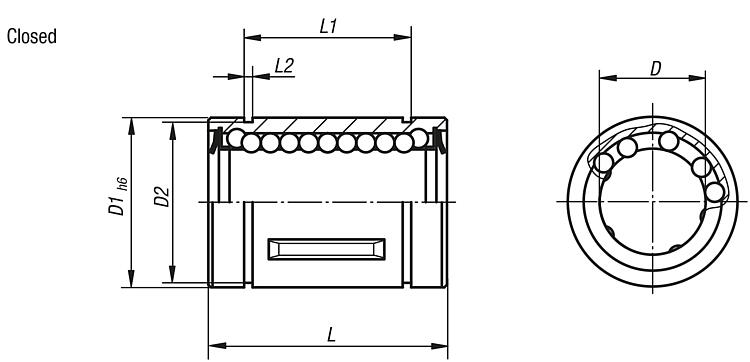 Note:The linear ball bearings correspond to series 3 of ISO 10285. With double-sided seals and a stainless steel cage. The bearing is secured with DIN 471/472 circlips.