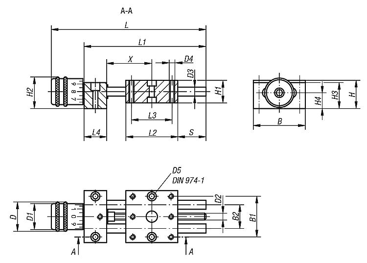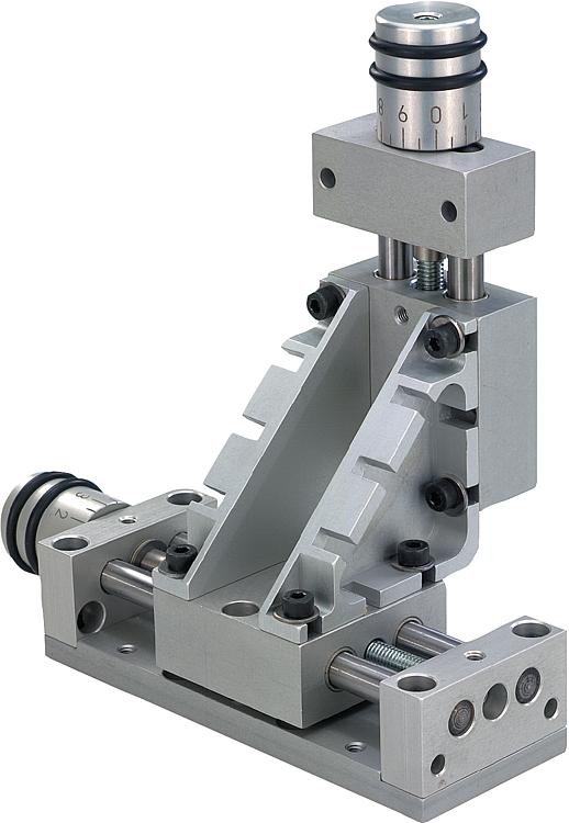 DescriptionMaterial:Bearing block and carriage aluminium alloy, anodised. Guide columns stainless steel, ground. Spindle stainless steel, rolled thread. Guide bearing maintenance-free.Version:Radial play on guide < 0.02 mm. No axial backlash. Spindle self-locking, with additional lock.Note:Due to the practically play-free guides and absolutely play-free spindle, loosening or clamping of the spindle is not required during adjustments. Scale graduation is 5 or 10 increments, 1 increment is equal to 0.1 mm travel. Within the respective sizes, the positioning stages can be easily combined using the modular principle.Special features: DownloadHere is all the information as a PDF datasheet: