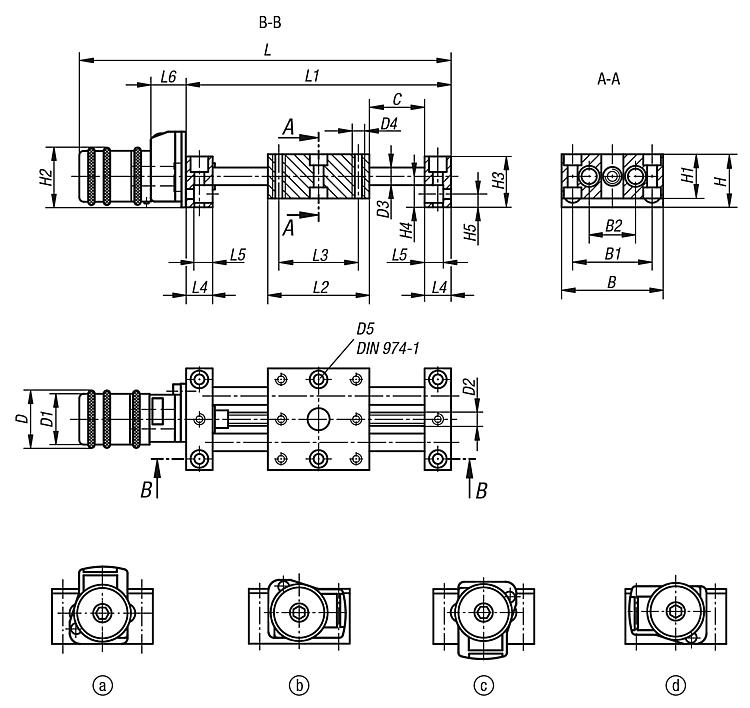 Digital position indicators with 0.1 mm display accuracy, digits increase with right rotation. The display value of the position indicator can be adjusted by turning the carrier ring. The mounted position of the position indicator can be set in 4 positions with a screw. Size 25 can be mounted in 3 positions (up, right and left).