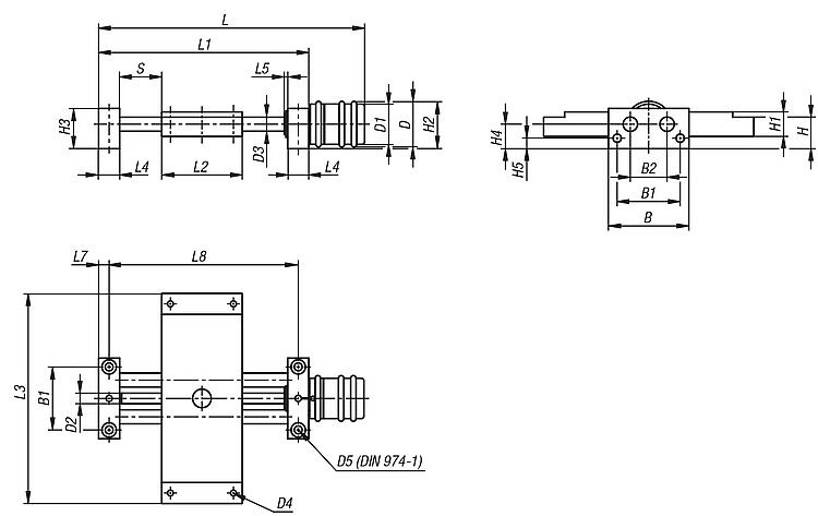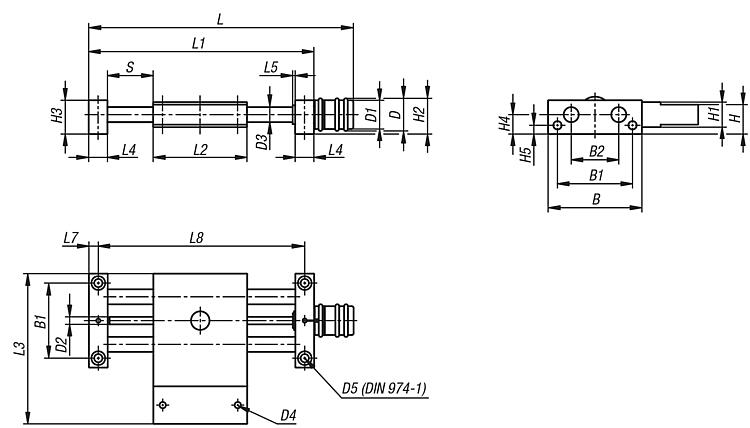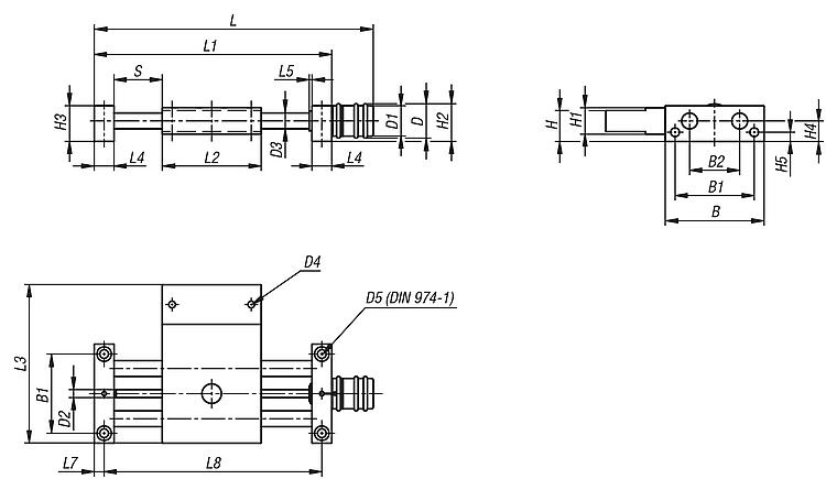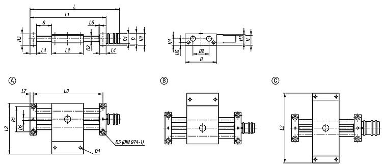 | Order No. | B | B1 | B2 | C (travel) | D | D1 | D2 | D3 | D4 | D5 | H | H1 | H2 | H3 | H4 | H5 | L | L1 | L2 | L3 | L4 | L5 | L7 | L8 | F1 N | F2 N | F3 N | Mx Nm | My Nm | Mz Nm | CAD | Acc. | Price | Order |