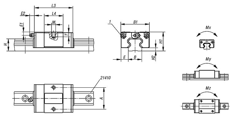 Version:Bright.Note:Compact guide carriage with recirculating ball guide precision N not preloaded (Z0). With double-sided end seal. 4-row versions with round arch profile. The profile guide rail tracks are arranged at 45° and can accept loads from all directions.