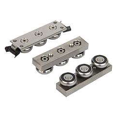DescriptionMaterial:Steel.Version:Electro zinc-plated.Note:Roller carriage with low coefficient of friction, therefore very free-running. The roller journals are lifetime-lubricated and have a 2Z (dust cover) seal. By simply moving the centre cam roller, the roller carriage can adjusted to be play-free or under the desired initial tension in the rail. The compact version has a plastic stripper for cleaning the tracks.