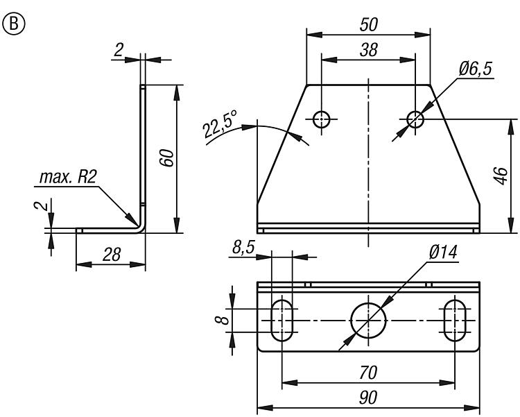 Stainless steel bright.Note:Angle bracket for easy mounting of the chain tensioner It offers additional flexibility for alignment and adjustment. The slotted holes enable easy readjustment when the usual tensioning range is exceeded. Misalignments can be compensated for by lateral adjustment.