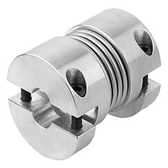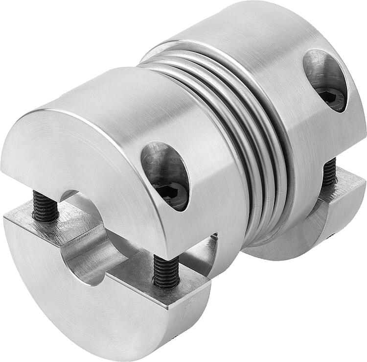 Version:Bright.Note:Metal bellows coupling with high torsional rigidity. The metal bellows compensates for axial, radial and angular shaft misalignment with low restoring forces. With clamping hubs for fastening to shafts.