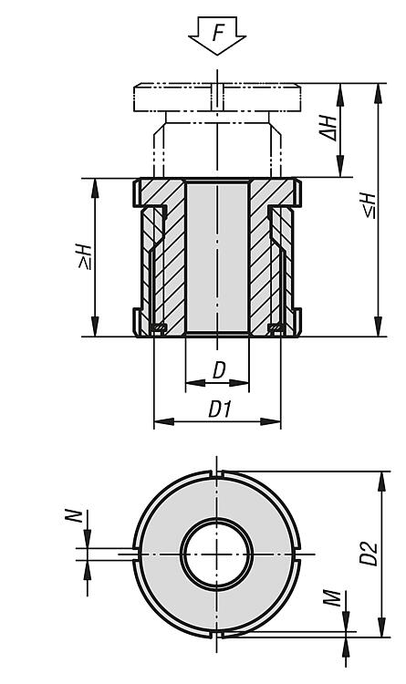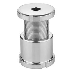 Stainless steel 1.4305. Version:Seel version trivalent blue passivated. Stainless steel version bright.Note:Levelling sets are used for mounting, levelling and aligning motors, aggregates, drive units and assembly lines. They are characterised by their wide adjustment range from 15 mm to 40 mm. Other sizes available on request. The static additional load F1 is effective after deducting the tensioning force (screw 8.8, µm = 0.125) from the total load F. Accessory:96650 Hook wrench with lug, DIN 1810A enhanced. DownloadHere is all the information as a PDF datasheet: