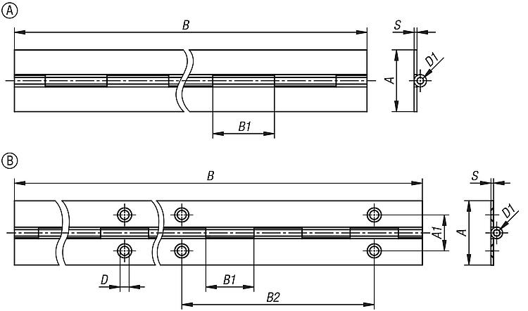 27877-30Piano hinges, steel, stainless steel or aluminium |