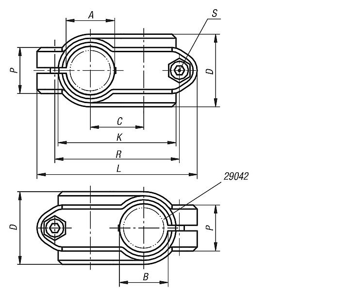 Note:The standard size for round tubes is Ø18 mm or Ø30 mm. Use reducer sleeves 29042 if smaller tubes are to be clamped or a conversion from round to square tubes is required.On request:Plastic clamping levers for tightening.Accessory:- Reducer sleeves 29042