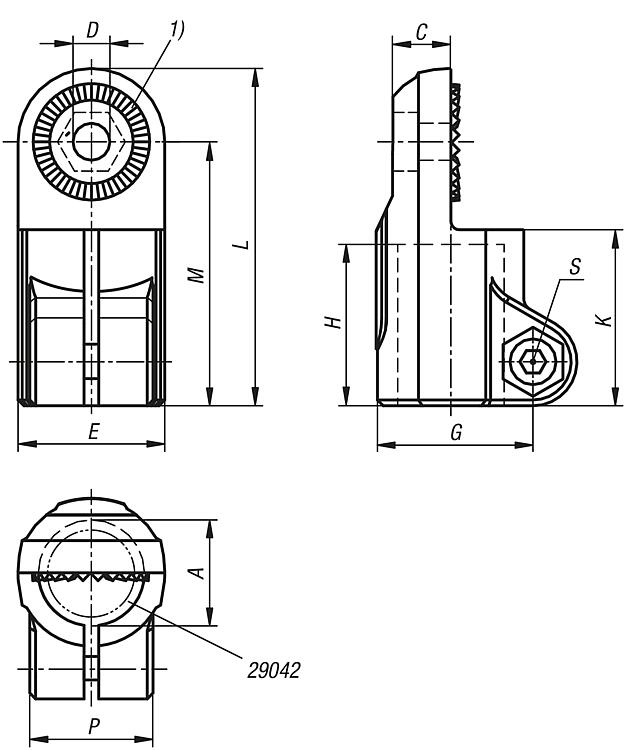 Note:Swivel half clamps with raised teeth can be combined with swivel half clamps with sunken teeth (29024, 29028 or 29030) to make a complete swivel clamp.