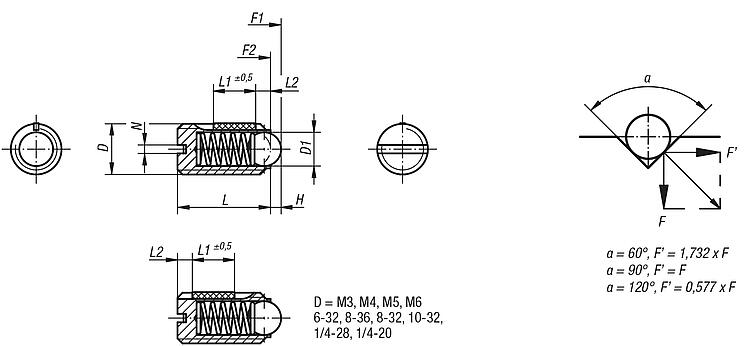 03001 inchSpring plungers with slot and ball, steel, with thread lock -... |