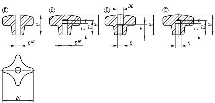 DescriptionMaterial:Grey cast iron GJL 200.Version:Vibratory ground. Bright.Note:For the inch series, dimension D is in inches, all other dimensions are in mm.Drawing reference:Form B: drilled through Form C: blind hole Form D: tapped and counterbored Form E: tapped blind hole Special features: DownloadHere is all the information as a PDF datasheet: