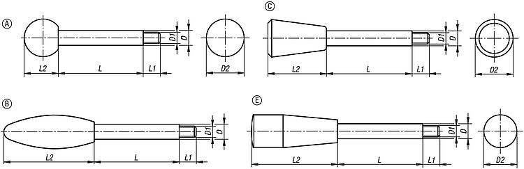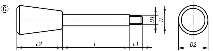 Rod steel or stainless steel 1.4305. Version:Thermoset black, high-gloss polished. Steel black oxidised or bright stainless steel.Note:For the inch series, dimension D1 is in inches, all other dimensions are in mm. DownloadHere is all the information as a PDF datasheet: