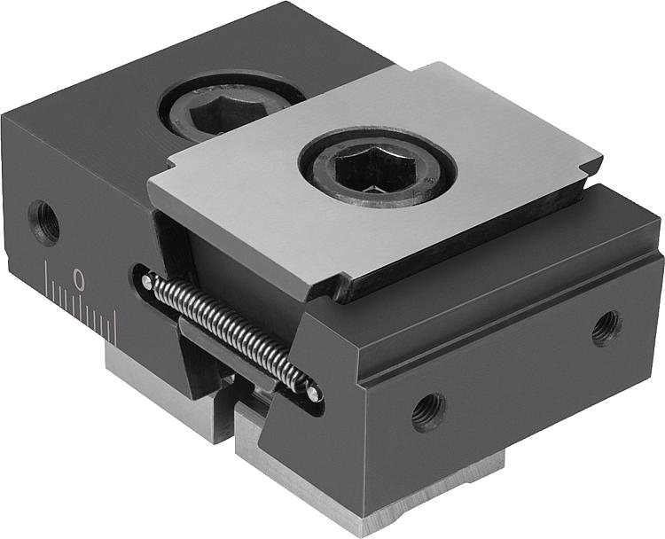 产品说明产品描述:楔形夹具的特殊结构尤其适合进行多重夹紧。其楔形面结构可以达到较大的夹持力。拧入夹紧螺栓时,两个夹紧元件会朝外移动,并将工件顶在固定的定位卡爪上。 通过楔形块中的腰型孔,可以移动楔形夹具时或进行公差补偿。 移动行程:M12 = ±1.0 mm, M16 = ±1.5 mm。材料:楔形块和夹紧元件材质为调质钢。规格:楔形块和夹紧元件经硬化和黑色氧化处理。提示:此楔形夹具只能与夹紧导轨 41500 搭配使用,适用于多重夹紧系统。 侧面固定孔用于固定工件挡块。 在夹紧面上的两个旋拧孔处还可以额外安装支撑板,以达到最佳的工件夹紧深度。 优点:通过夹紧导轨和固定卡爪的侧面标度,可确保了极高的可重复装夹精度。供货范围楔形夹具。 固定螺栓。 型槽螺母。 下载此处为收集信息的 PDF: