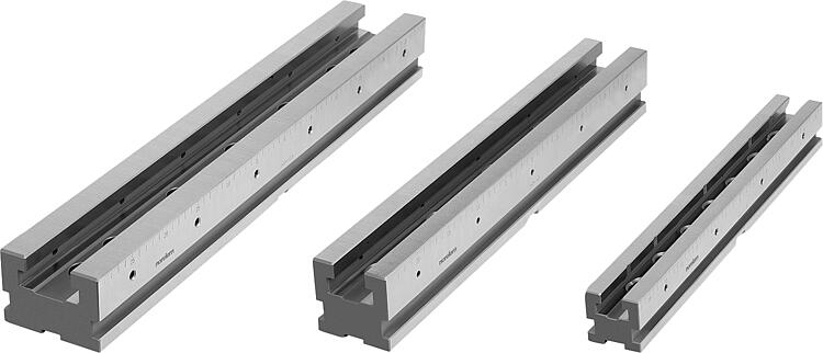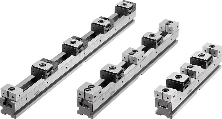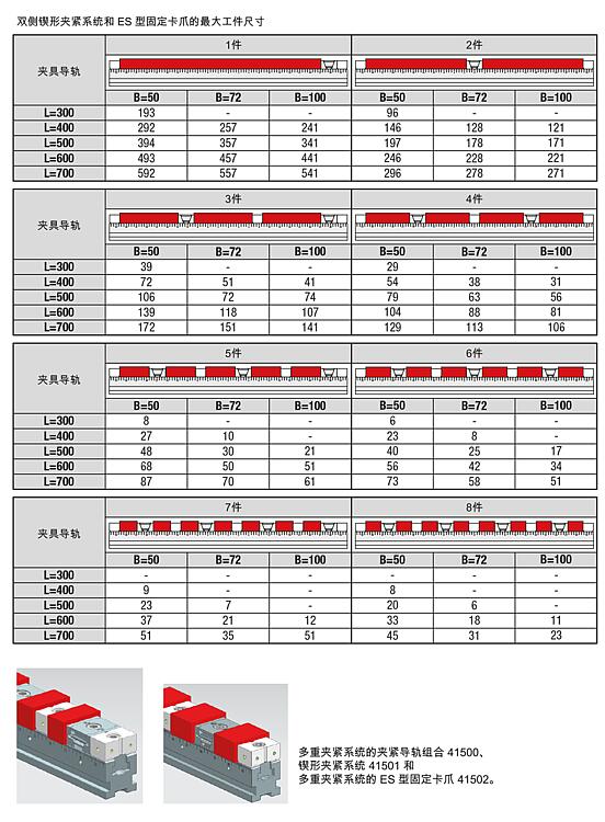 产品说明材料:工具钢。规格:经硬化和打磨处理 (HRC 55 ±2)。提示:可以通过各种接口连接夹具导轨。 1. 夹钳组的侧面夹持边。可以将夹钳固定在任何位置。 2. 符合 DIN 标准的圆柱头螺丝的通孔。 3. 安装孔径 Ø25H6 mm,适用于系统间距为 100 mm 的常见零点夹紧系统。 4. 安装孔径 Ø16H6 mm,适用于系统间距为 96 mm 的零点夹紧系统。 5. 用于 T 形槽台的三个带 18H7 的对齐槽。 6. 适用于孔距为 40 mm 和 50 mm 的网格系统的定位孔 Ø12F7 和 Ø16F7。技术参数:必须遵守 41510、41510-10 和 41510-20 产品系列中相应系统宽度的最大夹持力和锁紧扭矩。应用:可依次或彼此相邻安装多条不同长度的夹具导轨。通过精密齿轮可以非常精确的定位固定卡爪。夹具导轨的横向刻度可以记录下固定卡爪的每个位置,并在重复时进行相同的设置。可将挡块安装到侧面螺纹孔处。优点:通用且灵活。 适用于大小批量。 可相互夹紧不同夹具导轨上的大组件。特点: 下载此处为收集信息的 PDF: