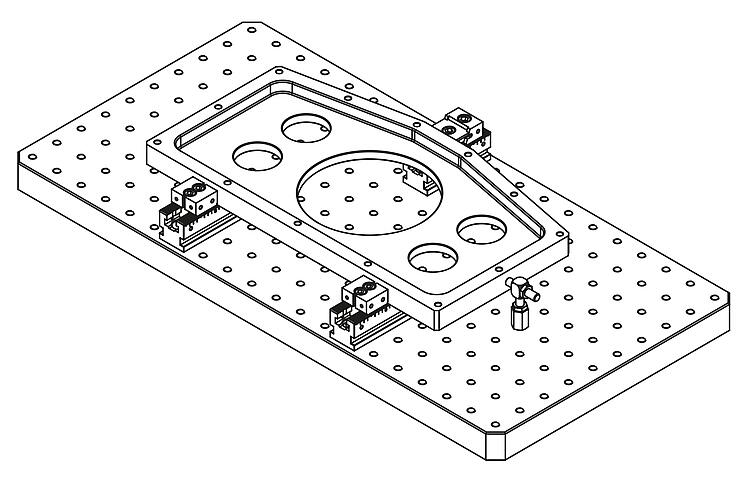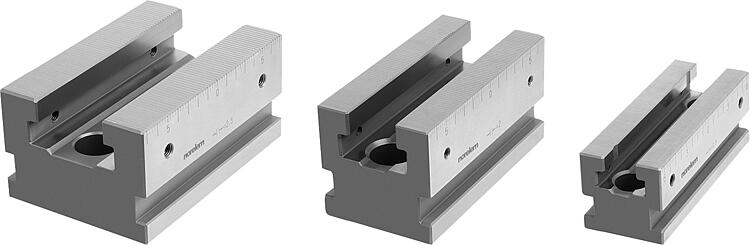 产品说明材料:工具钢。规格:经硬化和打磨处理 (HRC 55 ±2)。提示:可以通过各种接口连接夹具导轨。 1. 夹钳组的侧面夹持边。可以将夹钳固定在任何位置。 2. 符合 DIN 标准的圆柱头螺丝的通孔。 3. 用于 T 型槽台的带 18H7 的对齐槽。 4. 适用于孔距为 50 mm 的网格系统定位孔 Ø12F7 和 Ø16F7。技术参数:必须遵守 41510、41510-10 和 41510-20 产品系列中相应系统宽度的最大夹持力和锁紧扭矩。应用:使用短款夹具导轨,可以在空间狭窄的情况下完成夹紧作业。通过精密齿轮可以非常精确的定位固定卡爪。夹具导轨的横向刻度可以记录下固定卡爪的每个位置,并在重复时进行相同的设置。可将挡块安装到侧面螺纹孔处。优点:通用且灵活可用。 使用多个短款夹具导轨还可以进行灵活的夹紧作业。特点: 下载此处为收集信息的 PDF: