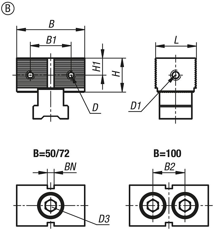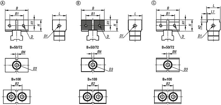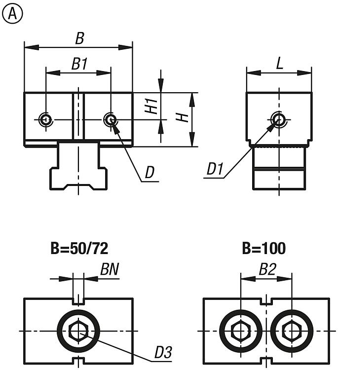 侧面固定孔用于固定工件挡块。在夹紧面上的两个旋拧孔处还可以额外安装支撑板,以达到最佳的夹紧深度。