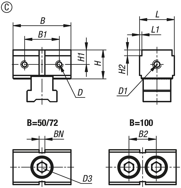 - 偏移型夹紧卡爪,C 型,适用于夹紧小夹紧边。