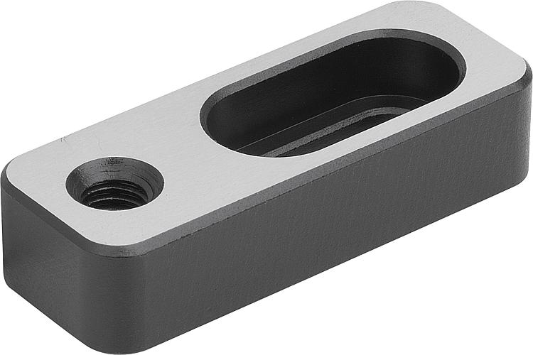 产品说明材料:调制钢。规格:经热处理及平面打磨处理 (HRC 32)。提示:通过用于多重夹紧系统的工件挡块,可以侧面定位工件。应用:可将挡块侧面安装到固定卡爪的两个表面上。优点:可通过椭圆孔灵活调整。特点: