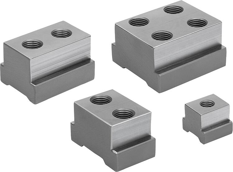 产品说明材料:调制钢。规格:热处理调质调质。导向面经打磨处理 (HRC 38)。提示:T 型槽螺母与多重夹紧系统相匹配。 A/C 型应用于固定挡块。 B 型用于操作锲形夹紧段的锲形夹块。应用:将 T 型槽螺母推入夹具导轨的相应位置。 使用圆柱头螺丝将 T 型槽螺母拧到固定挡块和楔形夹紧段上。优点:A/C 型中,夹具导轨中 T 型槽螺母的导轨间隙很小,这意味着也可以横向导向固定挡块。特点: 下载此处为收集信息的 PDF: