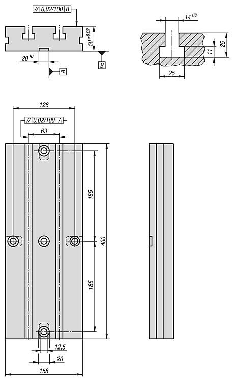 提示:底部带有压配槽的 T 型槽板用于简化对机床工作台上的平板的校准工作。特点: