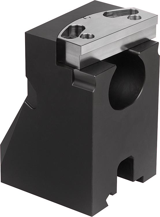 提示:使用摆动卡爪,夹紧倾斜的工件。