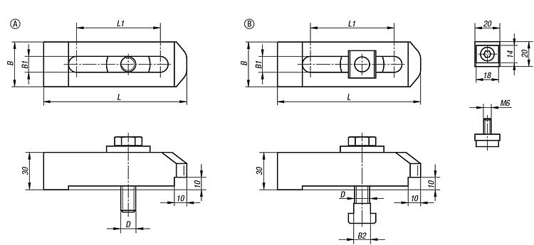 T 型槽螺母,槽尺寸 14,槽导向块,圆柱头螺丝 M6x12。