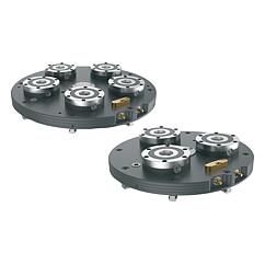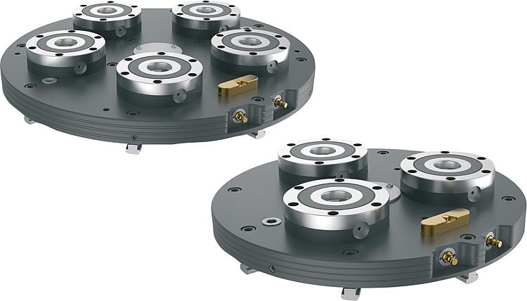 产品说明材料:钢制底板。 渗碳钢夹紧模块。规格:底板两侧磨光并氧化。 夹紧模块功能表面经过硬化和研磨处理。提示:预装车旋转夹持站,集成 UNILOCK 夹持模块 ESM138-C,用于车铣中心。夹持站可将车削技术和固定夹紧技术结合起来。夹持站通过定心销和型槽螺母固定在机床工作台上。 夹紧模块通过气动连接集中驱动。 内置的弹簧组实现了高夹持力(在无压力状态下张紧)。通过指示针的视觉显示来表明涡轮功能已激活。 通过气动压力松开。