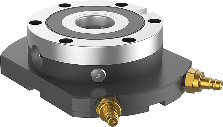 提示:完全装配好的夹持站,带有集成的 UNILOCK ESM138-C 夹持模块。夹持站通过夹紧钳或直接螺栓固定到机床工作台上。
