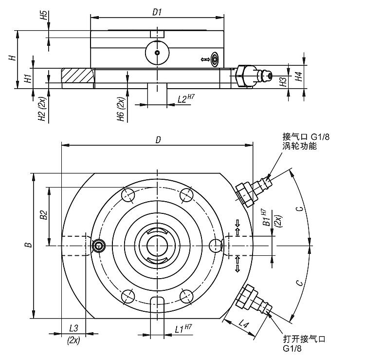 - 基准孔 25H7 和基准槽 20H7,用于对准夹持站。