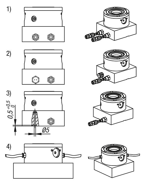 3) 第三种方法,通过一个孔为活塞腔排气,该孔位于底板下方,通过横向槽进行连接。