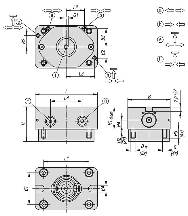 h) 底部无软管连接(夹紧滑块位置查询功能关闭)