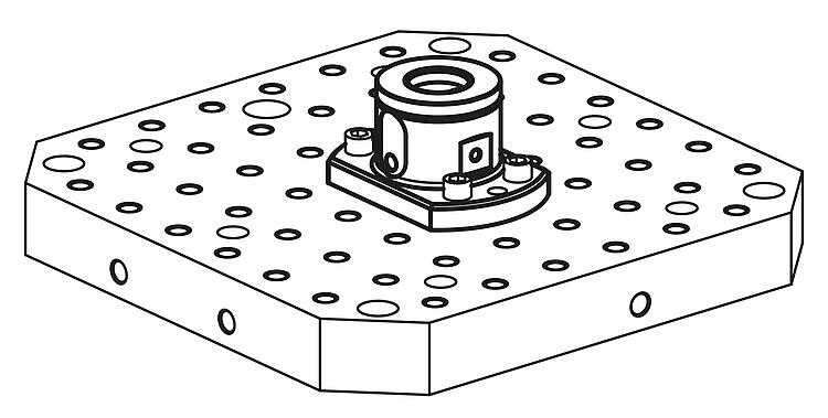 提示:UNILOCK 5 轴基本模块可直接适用于具有孔网格系统的机床工作台或 T 型槽设计的机床工作台,以及网格间距为 40/50 mm、系统尺寸为 M12 的网格托盘。适用于配有 UNILOCK 夹紧销的 UNILOCK 零点夹紧系统。使用合适的适配器夹紧销,也可直接安装在常见的零点夹紧系统上。