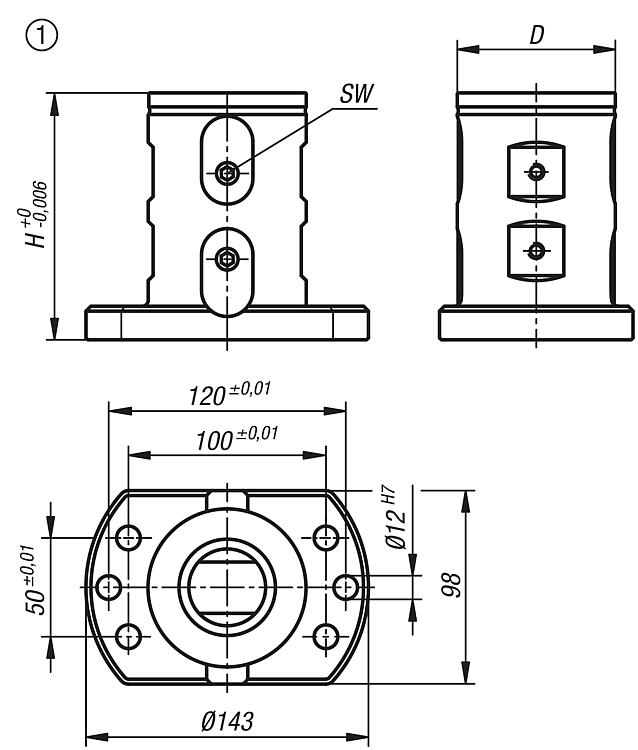 提示:UNILOCK 5 轴基本模块可直接适用于具有孔网格系统的机床工作台或 T 型槽设计的机床工作台,以及网格间距为 40/50 mm、系统尺寸为 M12 的网格托盘。适用于配有 UNILOCK 夹紧销的 UNILOCK 零点夹紧系统。使用合适的适配器夹紧销,也可直接安装在常见的零点夹紧系统上。