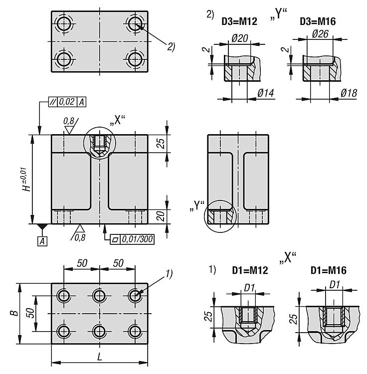 Datasheet 01247-06 灰口铸铁厚度垫块 H 型,长款