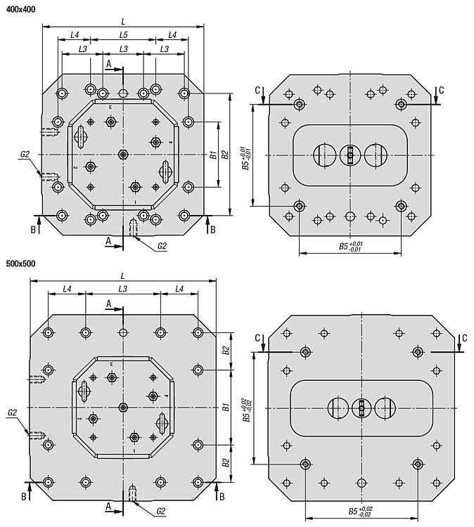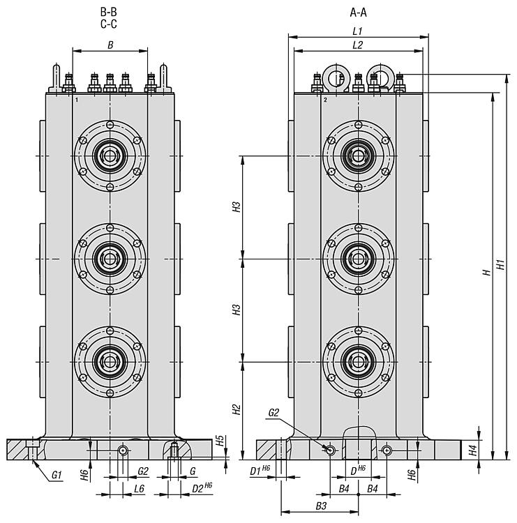 01857-20四面灰口铸铁塔式夹具,配备 UNILOCK 零点夹紧系统 |