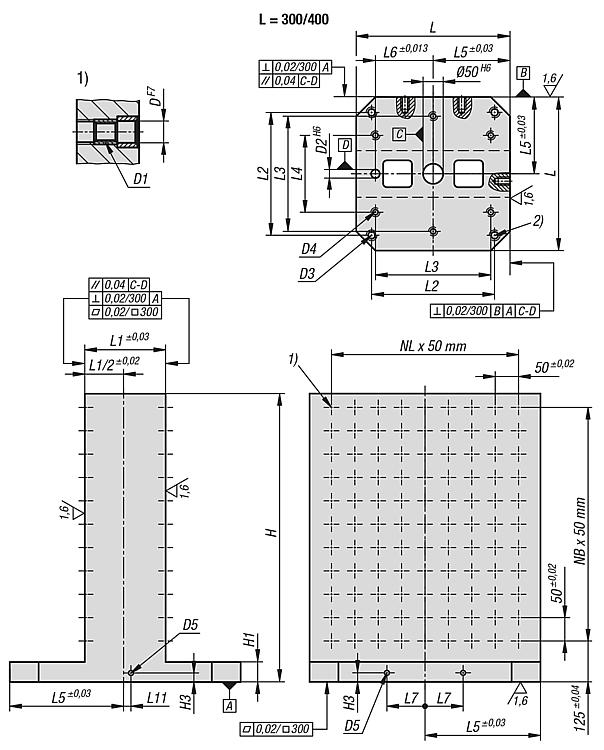 Datasheet 01265 双面灰口铸铁弯板 带栅格孔