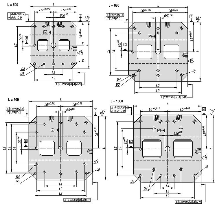 四面弯板适配于 DIN55201 和 JIS6337-1980 标准机床的机台。