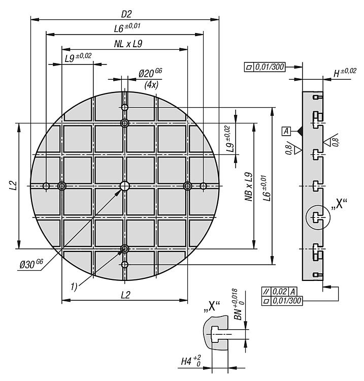 产品说明材料:GJL 300.规格:支撑面和夹紧面经打磨处理。提示:带 T 型槽的圆形底板通过模块化方式搭建夹具。这些底板直接定位和固定在机台上。