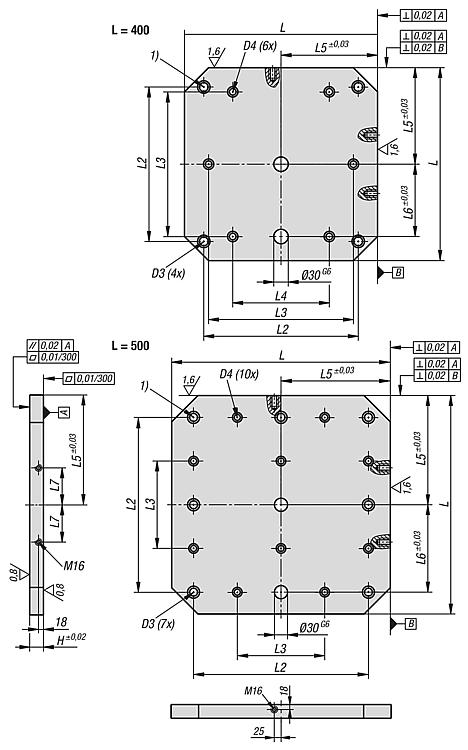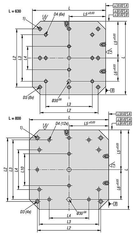产品说明材料:GJL 300.规格:支撑面和夹紧面经打磨处理。提示:带预加工夹紧面的工装板提供了一种快速、经济的方式,用于生产具有特殊栅格或单独钻孔的主体。工装板适配于 DIN55201 和 JIS6337-1980 标准机床的机台。