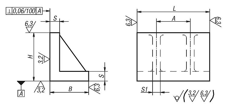 Datasheet 01520 L 形型材,带加强筋,灰口铸铁