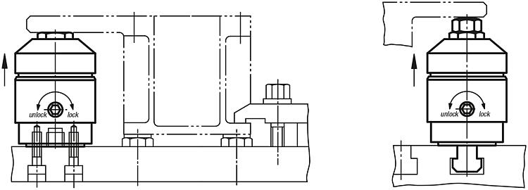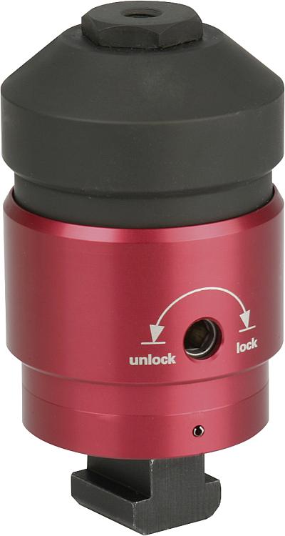 3. 如果是相反方向旋转 (unlock),则会释放夹紧装置。如果继续向释放位旋转,则支撑螺栓会缩至最终位置。