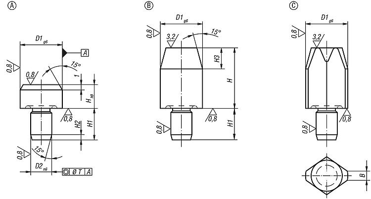 A 和 B 型还可以用作经硬化处理的挡块和夹具的支脚。