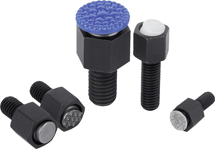 产品说明材料:调质钢主体。 顶珠: C、F 型为工具钢。 K 型为 POM。 O 型为不锈钢,金刚石表面。 P 型为不锈钢,聚氨酯表面。规格:主体经调质和和黑色氧化处理。 顶珠: C、F 型经硬化,黑色氧化处理。 K 型 POM 顶珠为白色。 O 型,表面类似 100 磨削粒度。 P 型,配聚氨酯硬度达到 60° 邵氏硬度。提示:自调整支撑垫用于对未经加工和经加工的工件进行支撑和夹紧。此外,自调整支撑垫在夹具制造中充当挡块、支撑块垫块、压紧块使用。