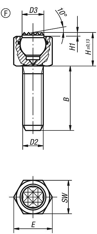 | 订货号 | 类型 | B | D2 | D3 | H | H1 | E | SW | 顶珠 ø | 负载能力 max. kN (静态负载) | CAD | 配件 | 价格 | 订购 |