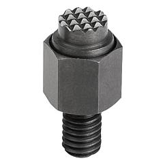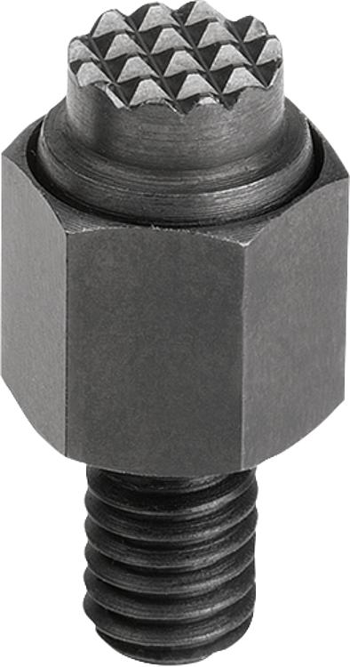 自适应球头端面,可自动摆回,带六角形,带外螺纹,平头顶珠,齿面