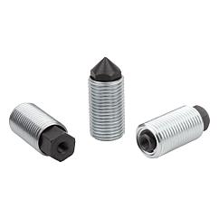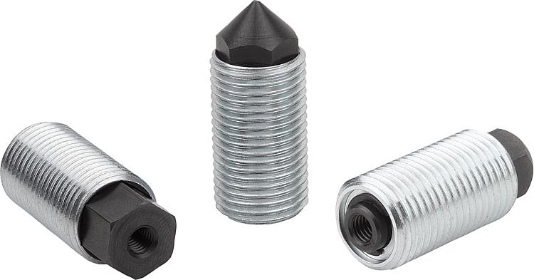 产品说明材料:钢制。规格:镀锌螺纹套筒,蓝色钝化处理。 顶销,渗碳硬化处理及黑色氧化处理。 标准弹力,加强弹力。提示:伸缩式弹簧柱塞,又被成为双向弹簧柱塞,用于各类部件的定位和夹紧。六棱形顶销能避免旋转,可用于推动或拉动部件。特点: 下载此处为收集信息的 PDF: