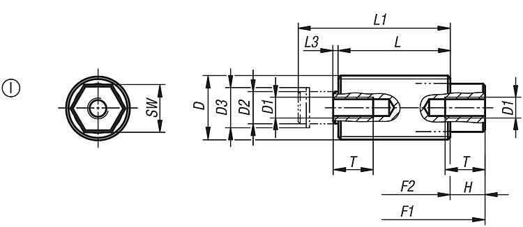 | SW | D1 | D2 | D3 | F1 N | F2 N | H=行程 | L | L1 | L3 | T min. | CAD | 配件 | 价格 | 订购 |