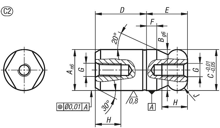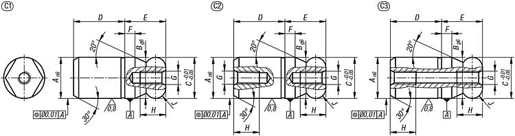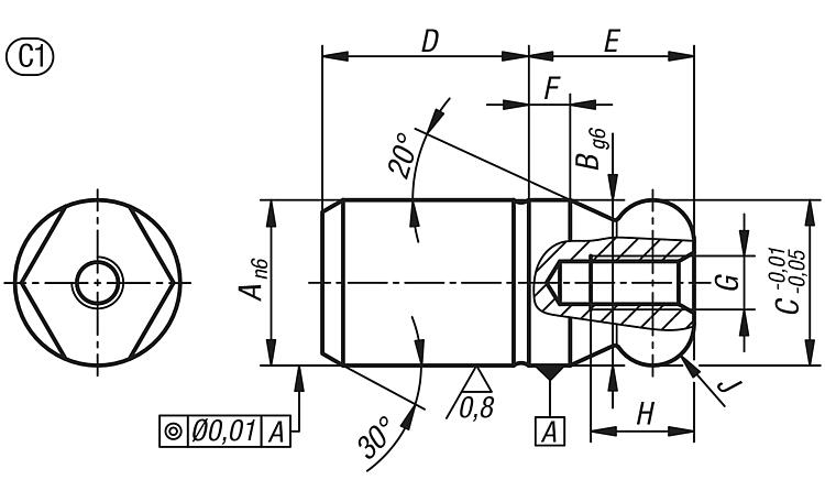 定位销,带球头,平头,C 型,单侧内螺纹,带盲孔 |