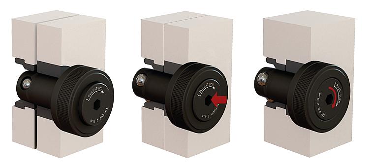 定位气缸定位孔中并按下按钮。用这种方式将三个调节球分别向外驱动,以定位组件。然后用六角扳手将定位螺栓拧 1/4 圈,使组件形状配合地固定夹紧。