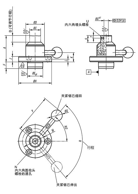 产品说明材料、规格:调质钢主体和夹紧销,经调质和黑色氧化处理。
