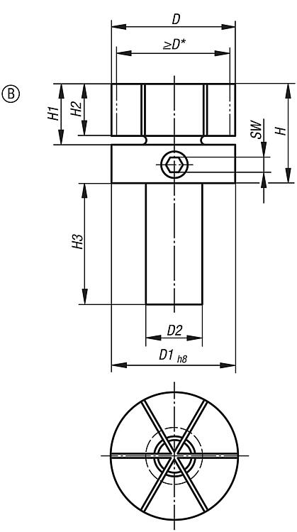 弹性夹头,带侧面锁紧,B 型,带轴杆,用于车床卡盘